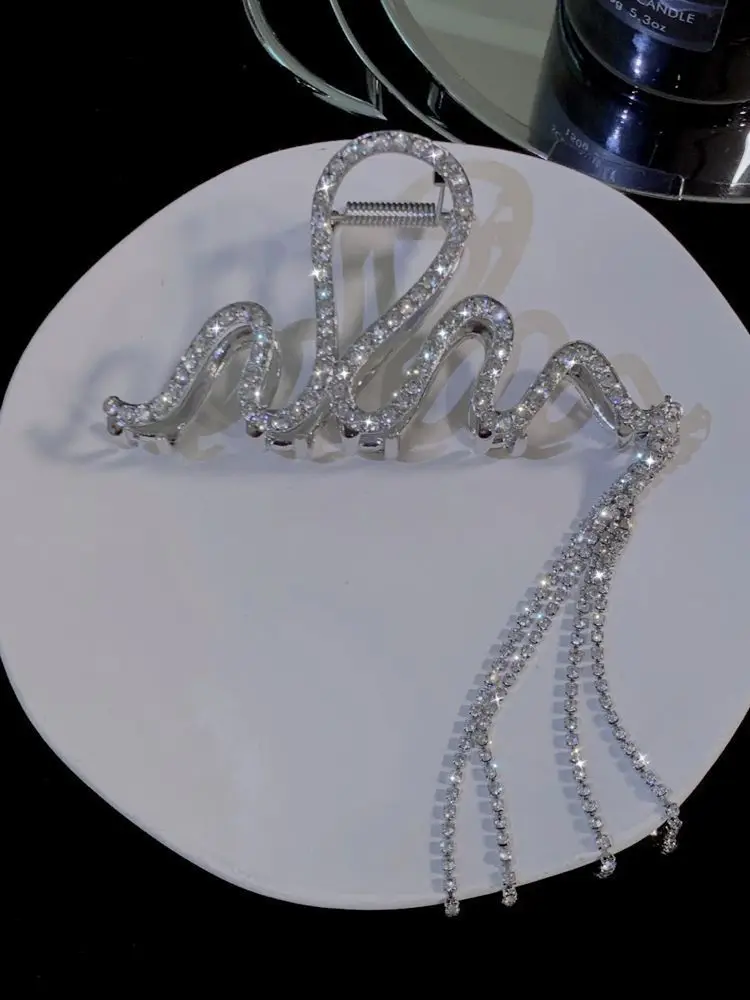 👍Hot Hit 1PC Light Luxury Rhinestones Grab Clip Large Snake Clip Female High-end Tassel Chain Hair Clip Back Head Shark Clip Head
