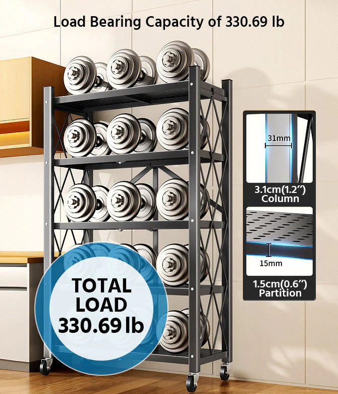 The Heavy-Duty Foldable Metal Organizer Shelf is the perfect solution to store and organize any space in your home. Whether it’s the garage, kitchen, or office, this shelf unfolds instantly and holds heavy loads without bending.